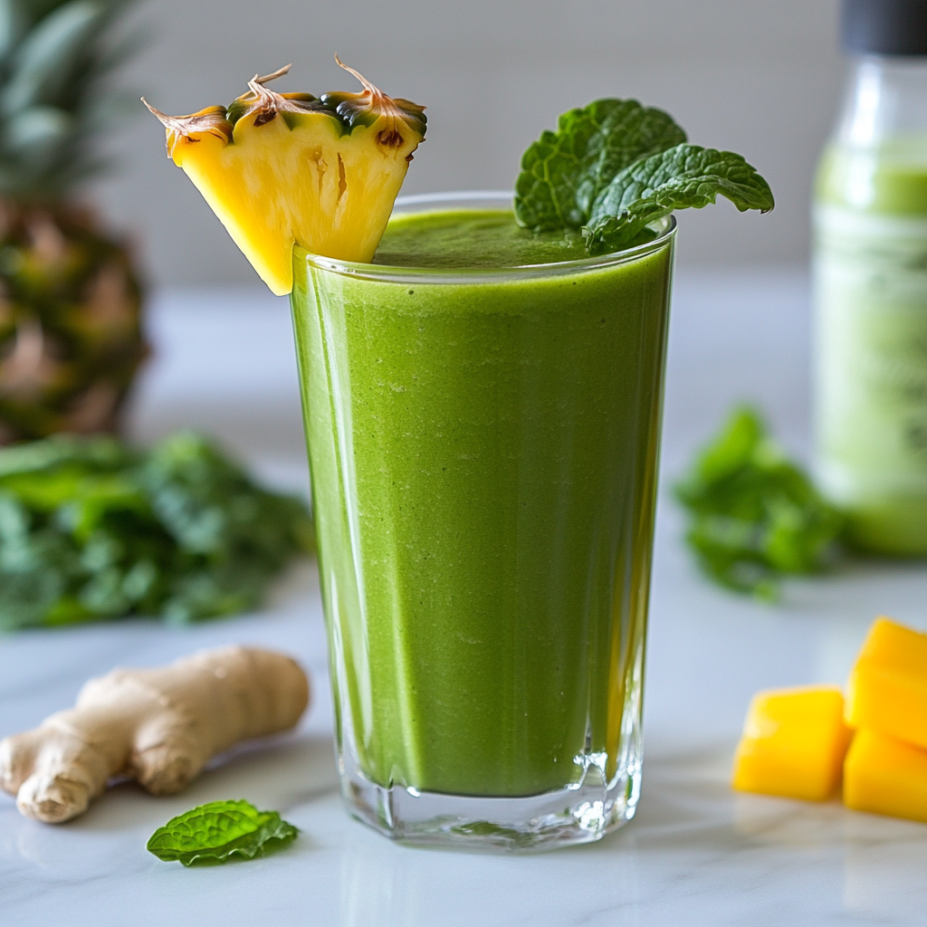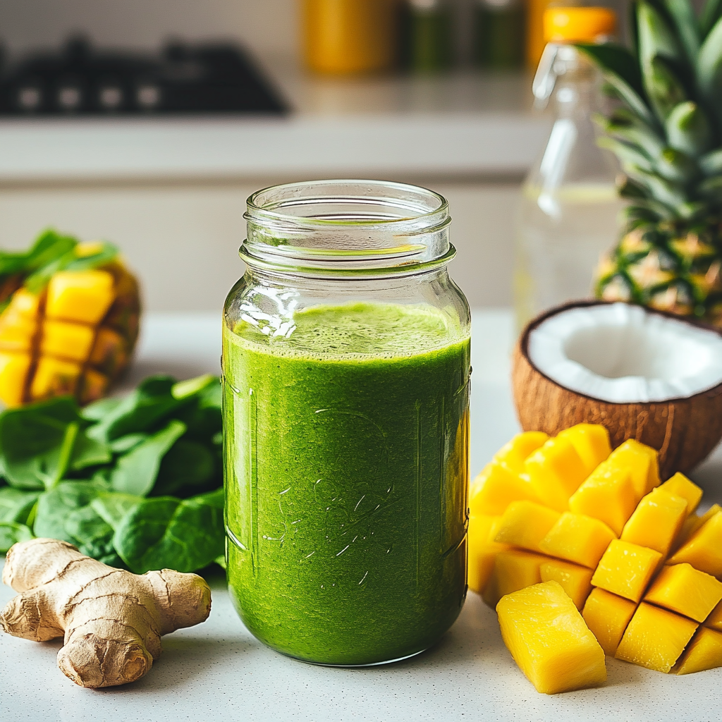 What makes the Tropical Café Island Green Smoothie recipe stand out isn’t just the taste—it’s the synergy between its ingredients. Take spinach and kale, for example. Both are packed with antioxidants, fiber, and essential vitamins like A, C, and K. They help support immunity, reduce inflammation, and promote healthy digestion. According to Healthline, leafy greens are also associated with lower risk of chronic disease. Mango and pineapple bring more than sweetness—they’re rich in vitamin C and natural enzymes like bromelain, which can ease bloating and aid in breaking down proteins. Banana, though optional in my version, adds potassium and creaminess, but it also increases sugar content, which is why I often swap it out for avocado. Ginger, one of my favorite additions, has been shown to boost thermogenesis and metabolism, especially when consumed in the morning. A study on PubMed shows that ginger may contribute to weight management and metabolic health. Finally, coconut water provides natural electrolytes, helping rehydrate the body after sleep or a workout. Together, these ingredients turn the Island Green Smoothie into more than just a drink—it’s a functional meal that fuels your body from the inside out.